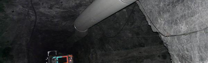 Outside the tunnel a powerful fan blows fresh air into the dict, and the fresh air drives exhausted air out. In this way the working climate at the tunnel face improves quickly after a detonation.